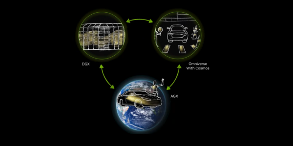 自动驾驶时代已经到来,汽车产业需要大量的算力来训练自动驾驶能力,甚至利用人工智能来改造传统汽车生产线。在此背景下,NVIDIA为汽车产业实现智能化发展提供三类计算系统:用于AI模型训练的NVIDIA DGX、用于测试驾驶和生成合成数据的系统Omniverse以及车载超级计算机DRIVE AGX。图片来源:NVIDIA CES 2025 Keynote